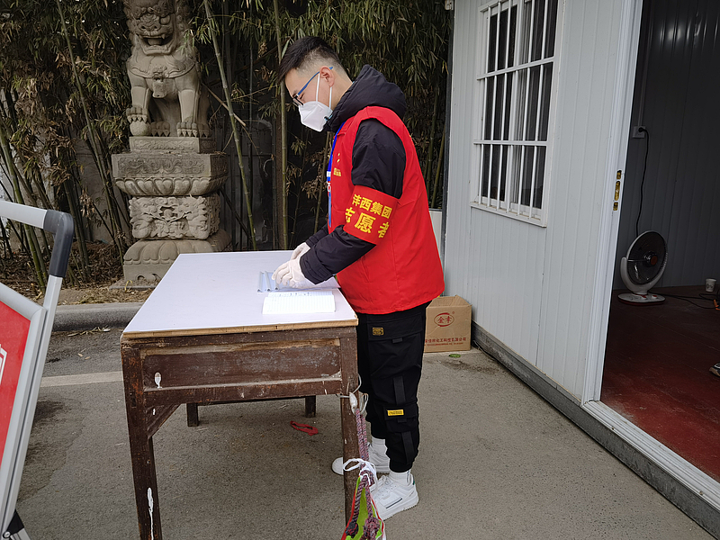 陳旭進行核酸檢測信息登記工作