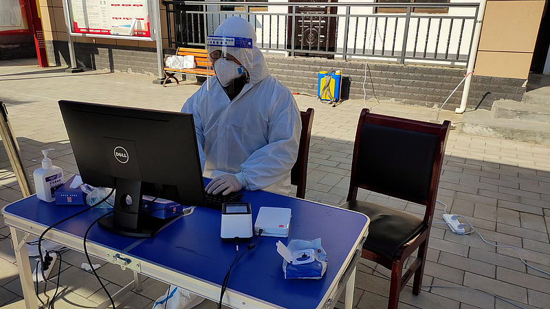凌晨5點,他又一次被電話叫醒,新一輪核酸檢測工作即將開始,天剛亮他就前往下沉的新城新泥河村開始核酸檢測準(zhǔn)備工作。穿上防護服、準(zhǔn)備好檢測二維碼、進入核酸檢測系統(tǒng),一系列動作一氣呵成,這已經(jīng)是他配合開展的第6輪核酸檢測工作了。