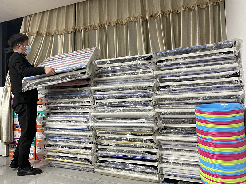 “一線的口罩、手套、防護服、酒精不能缺,大家住在辦公室需要床、被子、洗漱用品、飯盒筷子。有的同志從一線回來很晚,我們采購了各種口味的方便面,還有火腿腸、牛奶和一些水果,大家把辦公室當(dāng)家,我們就要盡可能給大家提供更全面的物資保障。”張謹(jǐn)表示。