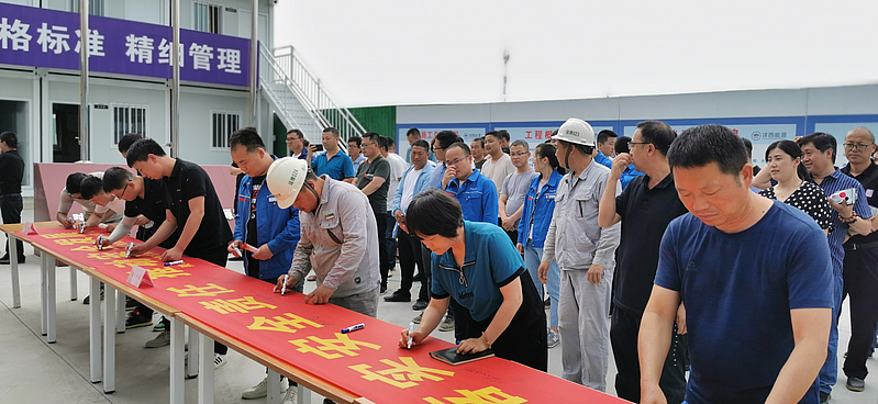 為進一步落實上級關于“安全生產月”及“安全生產萬里行”活動要求,夯實企業安全責任,推動項目安全發展,堅決遏制和防范各類安全事故發生,確保公司安全生產形勢穩定有序。近日,灃西集團能源公司工程管理部、運維部、行政部及各子公司聯合舉行2021年“安全生產月”暨“安全生產萬里行”活動啟動儀式,能源公司各部門、子公司安全生產負責同志及各在建項目安全生產負責人共計68人參加。