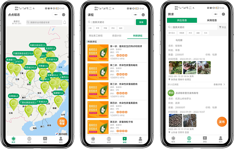 通過“共享農(nóng)技員”“共享農(nóng)課堂”“共享農(nóng)市場(chǎng)”三大技術(shù)服務(wù)體系,致力于實(shí)現(xiàn)農(nóng)業(yè)領(lǐng)域的“科技幫產(chǎn)、數(shù)據(jù)幫銷、數(shù)據(jù)幫策”。