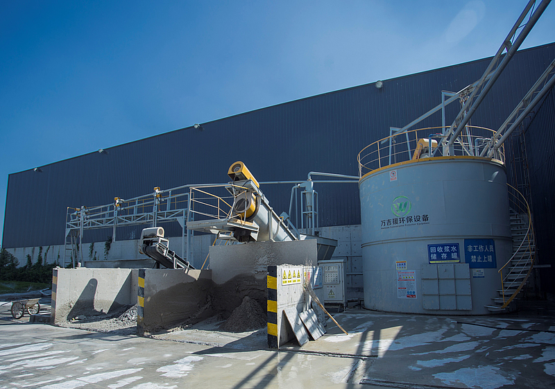 經過反復調研和不斷摸索,大城商砼站搭建了四大綠色環保智能生產體系。污水處理系統采用先進環保設備,將廢水、廢渣分離再利用,真正實現零排放;生產降塵系統讓粉塵“無處藏身”,粉罐采用強制脈沖反吹布袋除塵機,大幅降低粉塵污染;料倉噴淋系統為全封閉式料倉配備噴淋降塵裝置,可有效減少揚塵污染;生產降噪系統采用螺桿式低壓打灰系統,比傳統設備降低約30%的噪音,實現了以科技創新為先導,以精益化管理為手段,用智能技術詮釋綠色環保低碳的生產理念。