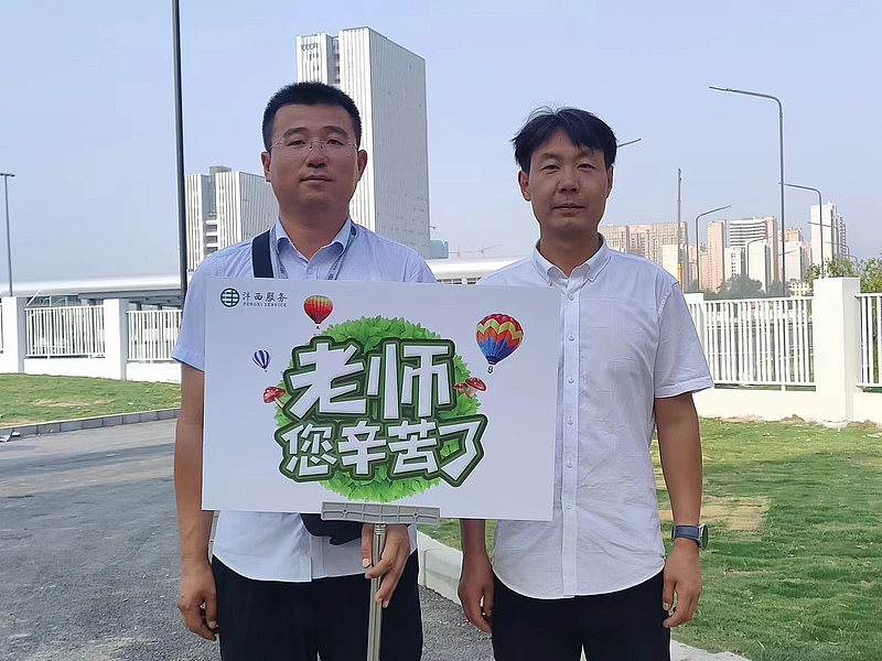 9月8日清晨,在服務公司入駐的19所學校大門外,各校管理人員手持精心準備的“老師,您辛苦了!”展示牌靜候每位老師的到來。一句句發自肺腑的問候,一張張燦爛的笑臉,溢滿的是濃濃的心意。