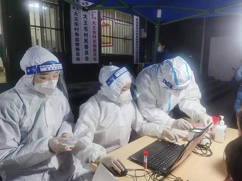 早上5點(diǎn),天還未亮?xí)r,劉恒希顧不上吃早飯便啟程前往客省莊村,到達(dá)后他便與同事開始了緊張而忙碌的核酸檢測秩序維護(hù)工作,在新一輪核酸檢測完成后,他又立刻投入到“敲門行動(dòng)”中,挨家挨戶上門詢問村民核酸檢測情況、是否有生活困難等。劉一博將村民安全送至家中疫情防控工作開展以來,劉一博已進(jìn)行下沉一線工作6輪次,日工作時(shí)長經(jīng)常超過8小時(shí)。