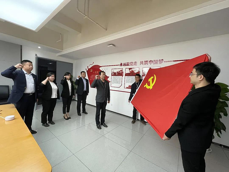 隨后,伴隨著莊嚴的《國際歌》,入黨宣誓儀式正式開始。4名預備黨員在尚海峰帶領下面向黨旗向黨組織許下了為黨和人民、為中國特色社會主義事業(yè)、為共產主義事業(yè)奮斗終身的誓言。舉起的右手是他們肩負起的重擔,口中的誓詞是他們決心的見證,堅定的眼神是他們對恪守誓言的執(zhí)著與承諾。