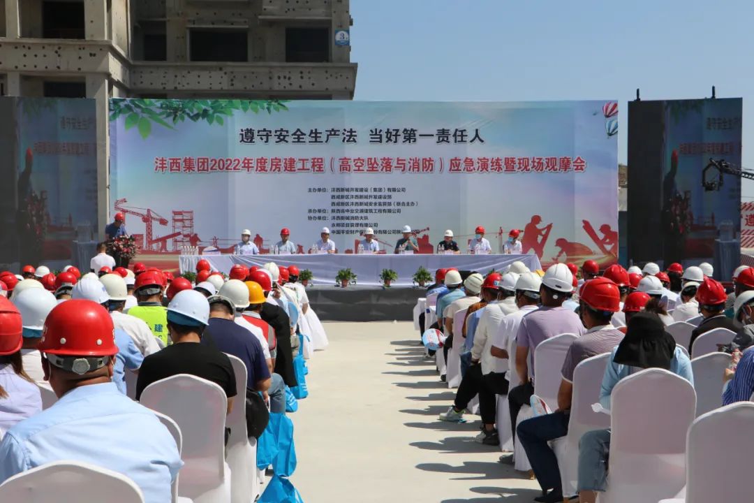 6月23日上午,灃西集團在王道新苑項目現場開展2022年度房建工程(高空墜落與消防)應急演練暨現場觀摩會,集團總經理郭廷喜致辭并宣布演練開始,副總經理張桂林參加。在高空墜落演練中,模擬了施工人員在施工過程中不慎墜落場景,現場應急指揮進行初步救治并聯系120將傷員送至醫院;在消防應急救援演練中,模擬了施工現場發生火災情景,項目人員運用滅火器...