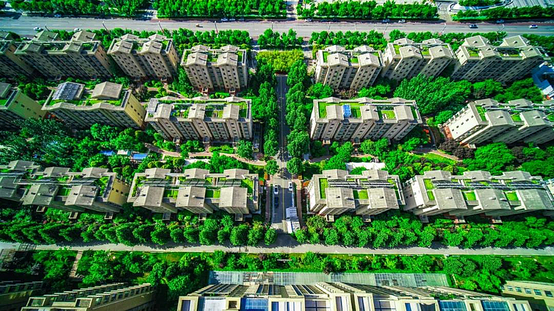 九月秋高氣爽,站在灃西新城的一棟大樓頂層放眼望去,記者被眼前的一幕深深震撼。很多大樓原本色彩單一的樓頂,生機盎然,各種綠植長勢旺盛,花卉五彩繽紛。據悉,屋頂花園通過種植佛甲草、景天、馬藺等耐旱耐澇、適應性強的植物品種,使雨水被土壤介質和植物根系充分吸收,從而起到滯留、吸收、凈化雨水,減少城市內澇的作用。而同時,滯蓄的雨水,也為大樓周邊區域的植物澆灌、道路沖洗、景觀用水等提供部分水源。