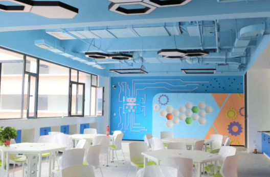 音效保障:為保證老師講課效果并避免聲音擴散,在前后墻面采用吸音板并內填吸音棉,以保證吸音效果。同時,教室安置聲麥設施,有效提升老師、學生音量,確保教學過程中老師與學生之間的有效溝通。